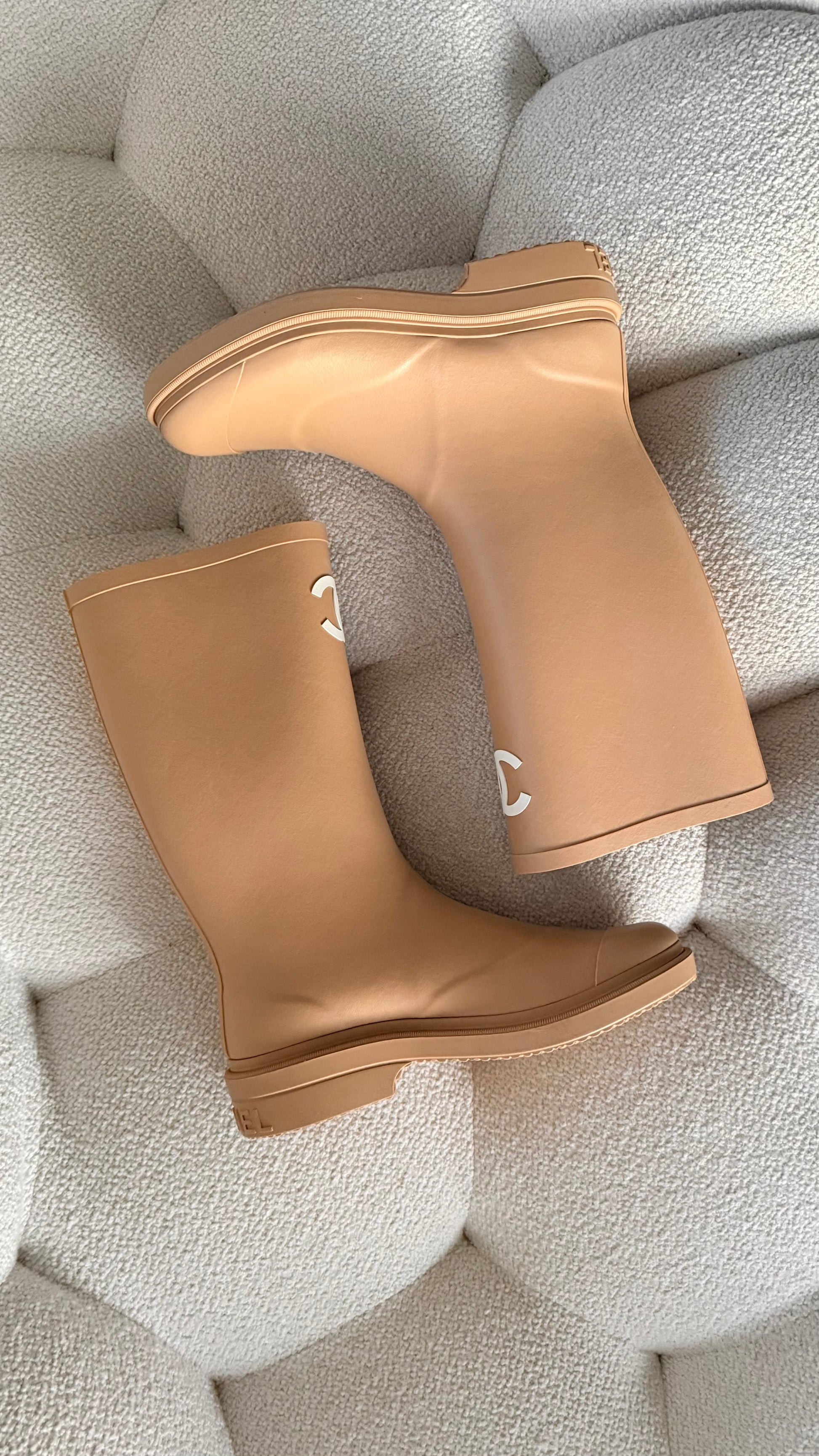 Chanel Wellington Rain Boots Beige 38