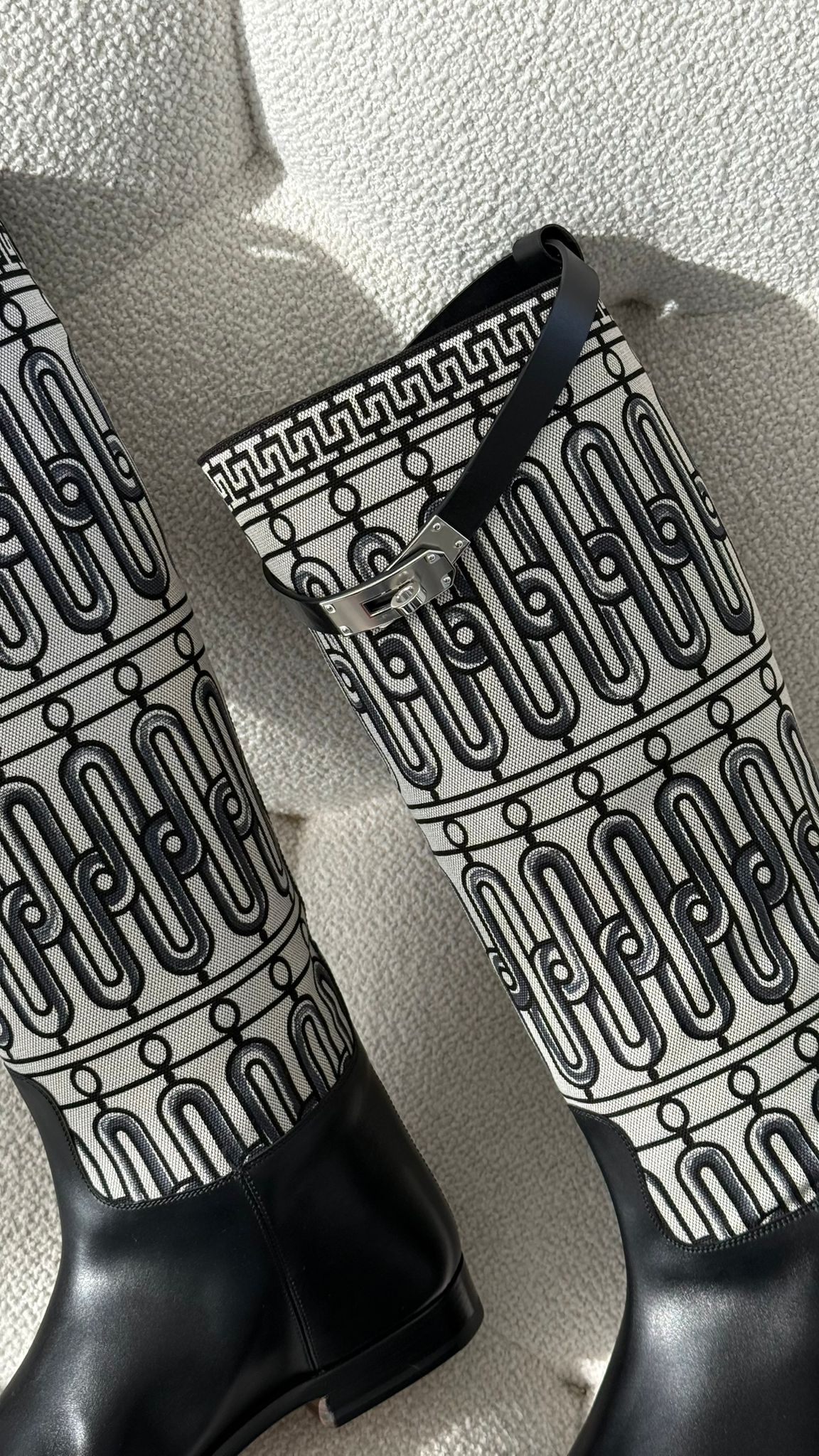 Style: Hermès Jumping Boots Toile Black & Prunoir