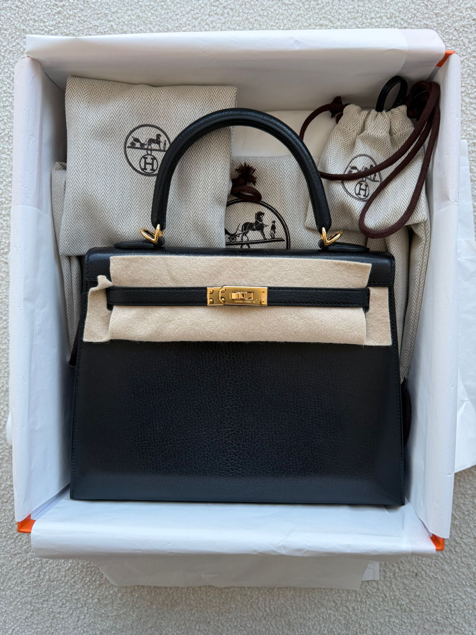 Hermès Kelly 25 Sellier Chèvre Black GHW K
